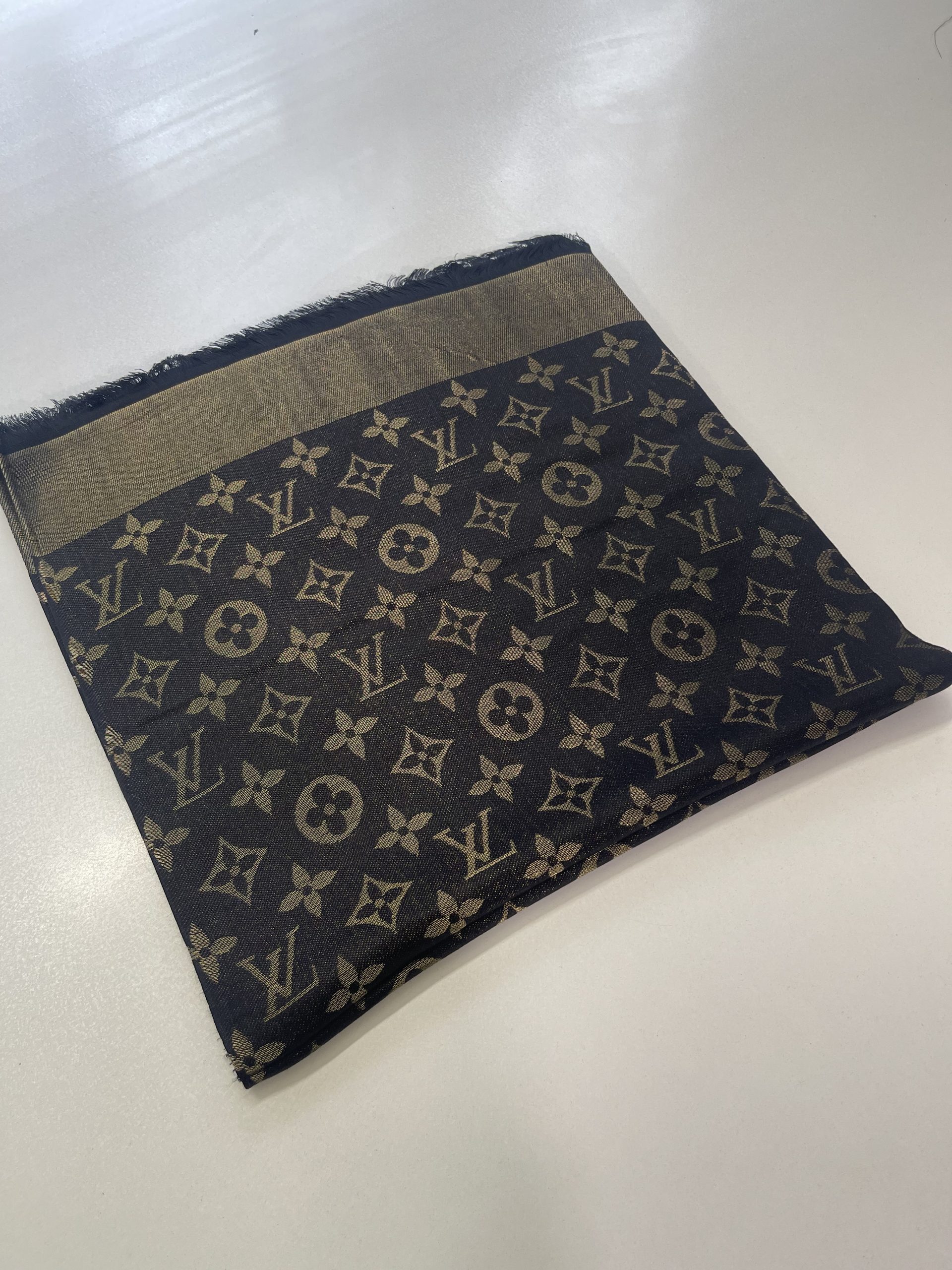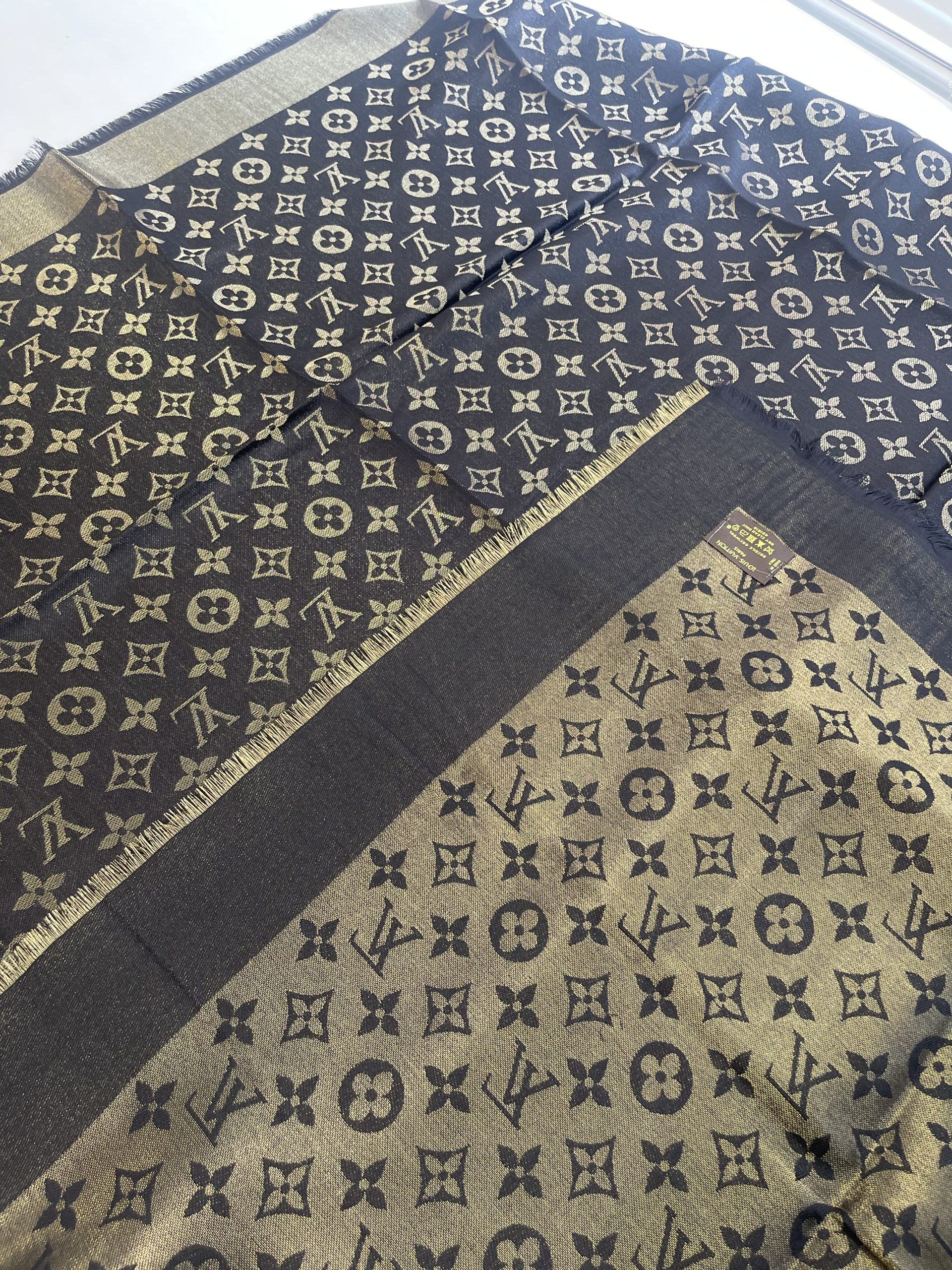 روسری کشمیر رنگ مشکی با لمه طلایی