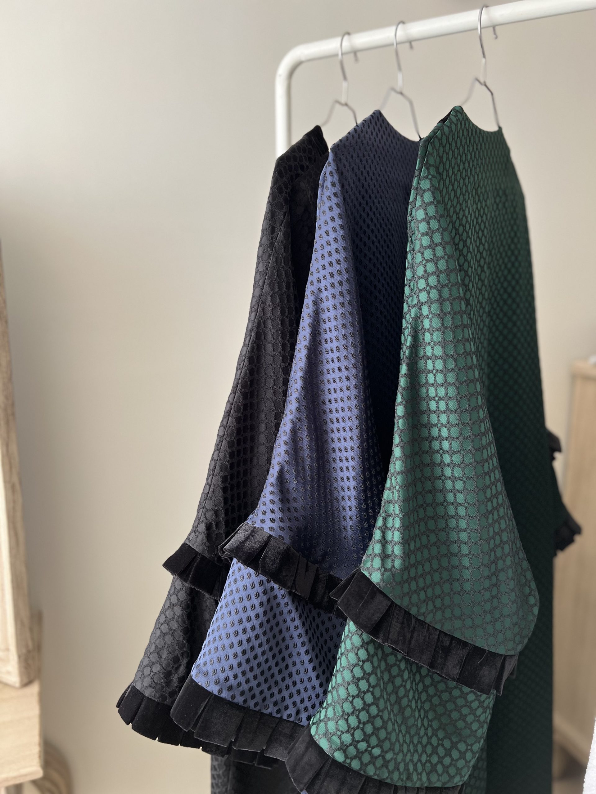 فری سایز میباشد و فقط قد استین و قد لباس متغییر هست ، سبک لباس کلا فرم ازاد دارد و از سایز ۳۴ الی۵۲ کاملا مناسب هست